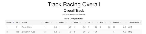 The "Overall Track Champion" is determined by taking the placing-results of multiple other competitions.
